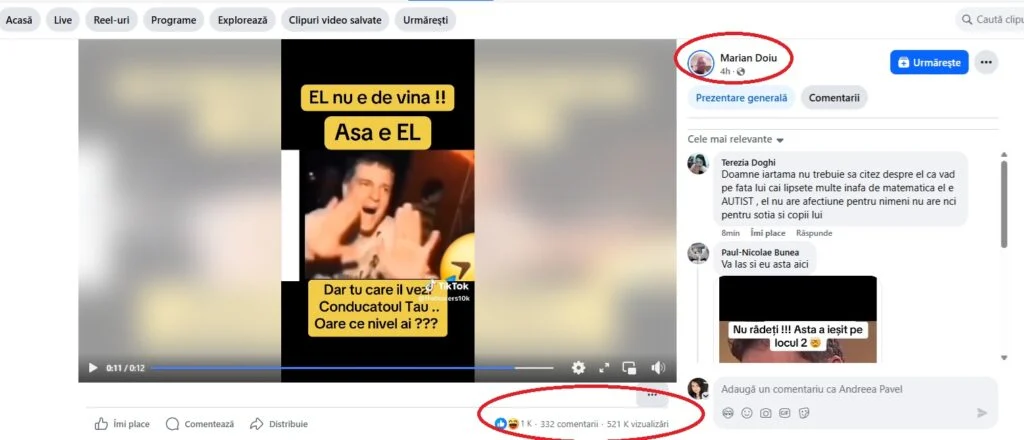 The clip was subsequently picked up by a Facebook user, Marian Doiu, nicknamed „Tarzan,” an AUR supporter with over 22,000 followers, where it exceeded 520,000 views and 8,500 shares in 5 hours.