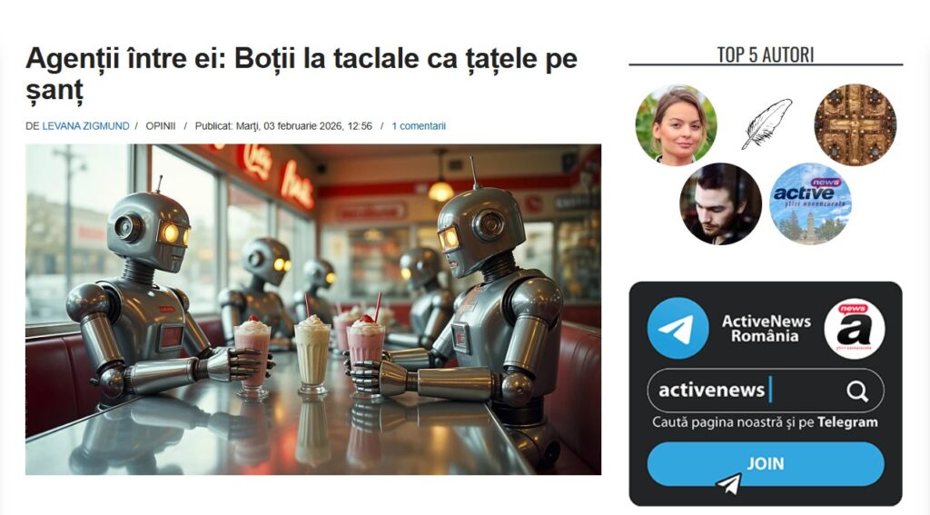 Site-ul conspiraționist ActiveNews, de pildă, a publicat în ultimele zile articole explicative din presa internațională, dar cu titluri precum “Agenții între ei: Boții la taclale ca țațele pe șanț” sau “COȘMARUL E AICI: A apărut un site pentru Roboții care închiriază Oameni” și fără explicații despre cum aceste îngrijorări sunt bazate pe afirmații fără dovezi.