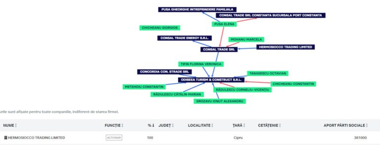 Firma este deținută în prezent de un offshore cipriot, Hermosiocco Trading Limited, dar conform surselor Info Sud-Est, de execuția contractelor se ocupă chiar Răzvan Chicheanu, nepotul lui Constantin Chicheanu.