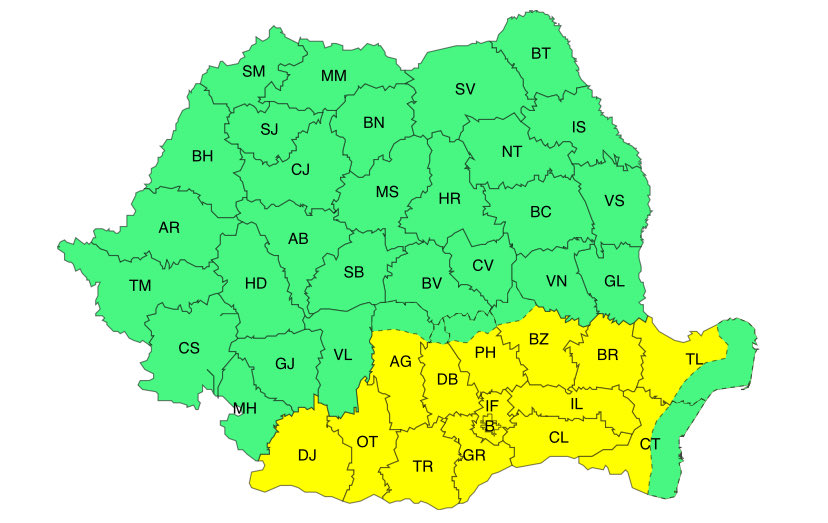 Joi, Dobrogea este vizată de un cod galben de caniculă și disconfort termic. Maximele se vor situa între 30 și 34 de grade, transmit meteorologii.