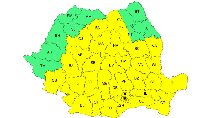 Începând de joi după-amiază și până vineri dimineață este valabil codul galben de ploi și vijelii.
