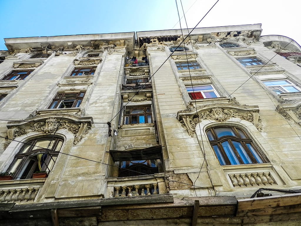 La parter, dacă reușești să arunci o privire de aproape, fără să ți se facă rău de la mirosul ce îmbibă imobilul, vei descoperi o mizerie greu comparabilă cu alt loc din oraș. Micuțele camere de la parter sunt sufocate de fecale, urină, resturi menajere, plastice și mobilier distrus, geamuri sparte sau haine sfâșiate. Brusc, imaginea maiestuoasei clădiri se pierde în spatele unei realități sinistre, ce își face prezența fix în centrul Constanței, pe o stradelă vizitată constant de turiști veniți de pretutindeni.