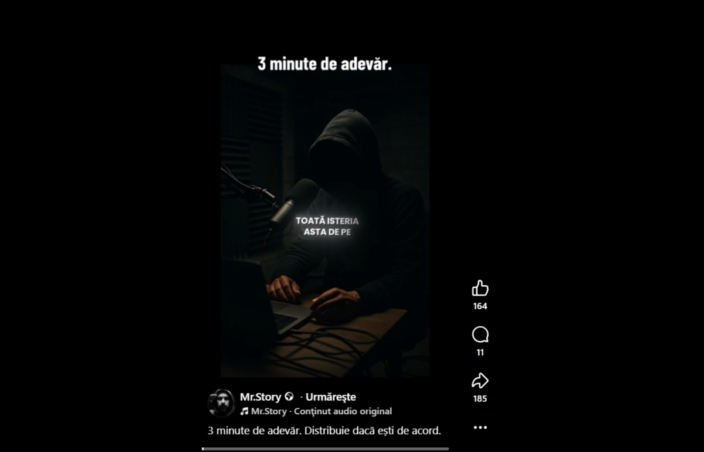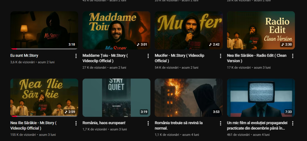 Și de atunci au urmat sute de videoclipuri în care ”Mr. Story” se folosește de AI ca să ventileze pe social media retorici ultranaționaliste și mesaje de susținere pentru Călin Georgescu.