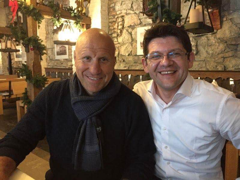 În altă fotografie apare într-un restaurant alături Mikhail Mamiashvili, campion olimpic al Uniunii Sovietice la lupte greco-romane.