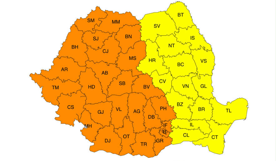 - O altă avertizare cod portocaliu de caniculă și disconfort termic accentuat intră vineri în vigoare pentru cea mai mare parte a țării.