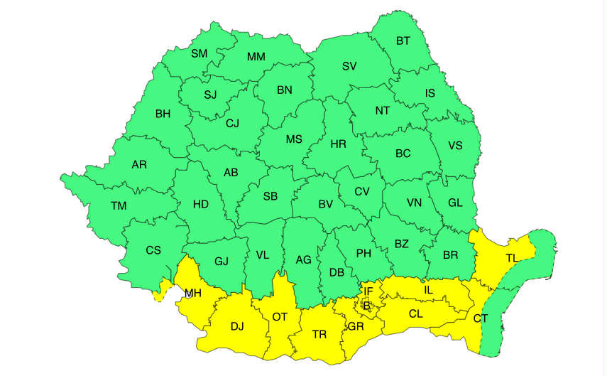 „În vestul și sudul Olteniei, în jumătatea de sud a Munteniei și în Dobrogea continentală se vor înregistra temperaturi deosebit de ridicate pentru această dată și va fi disconfort termic. Indicele temperatură-umezeală (ITU) local va depăși pragul critic de 80 de unități. Temperaturile maxime vor fi cuprinse între 31 și 34 de grade„, potrivit ANM.