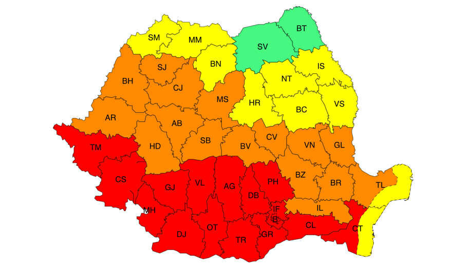 Meteorologii au emis noi avertizări de caniculă pentru aprospe toată țara, în acest sfârșit de săptămână. O parte a județului Constanța se va afla sub cod portocaliu și cod roșu, iar pe litoral va fi cod galben.