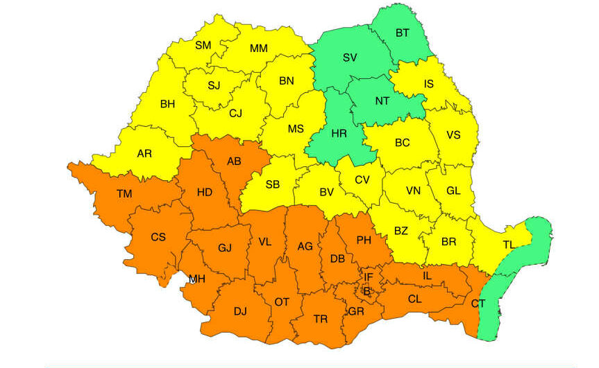 O parte a județului Constanța se află sub cod portocaliu, până sâmbătă dimineață. „În Oltenia, Banat, cea mai mare parte a Munteniei, în sud-vestul Transilvaniei, precum și în sudul Dobrogei continentale, valul de căldură se va intensifica, va fi caniculă, disconfort termic accentuat, iar indicele temperatură-umezeală (ITU) va depăși pragul critic de 80 de unități. Temperaturile maxime se vor încadra între 37 și 40 de grade. Minimele termice vor fi de 20…22 de grade și vor caracteriza o noapte tropicală”, potrivit Administrației Naționale de Meteorologie.