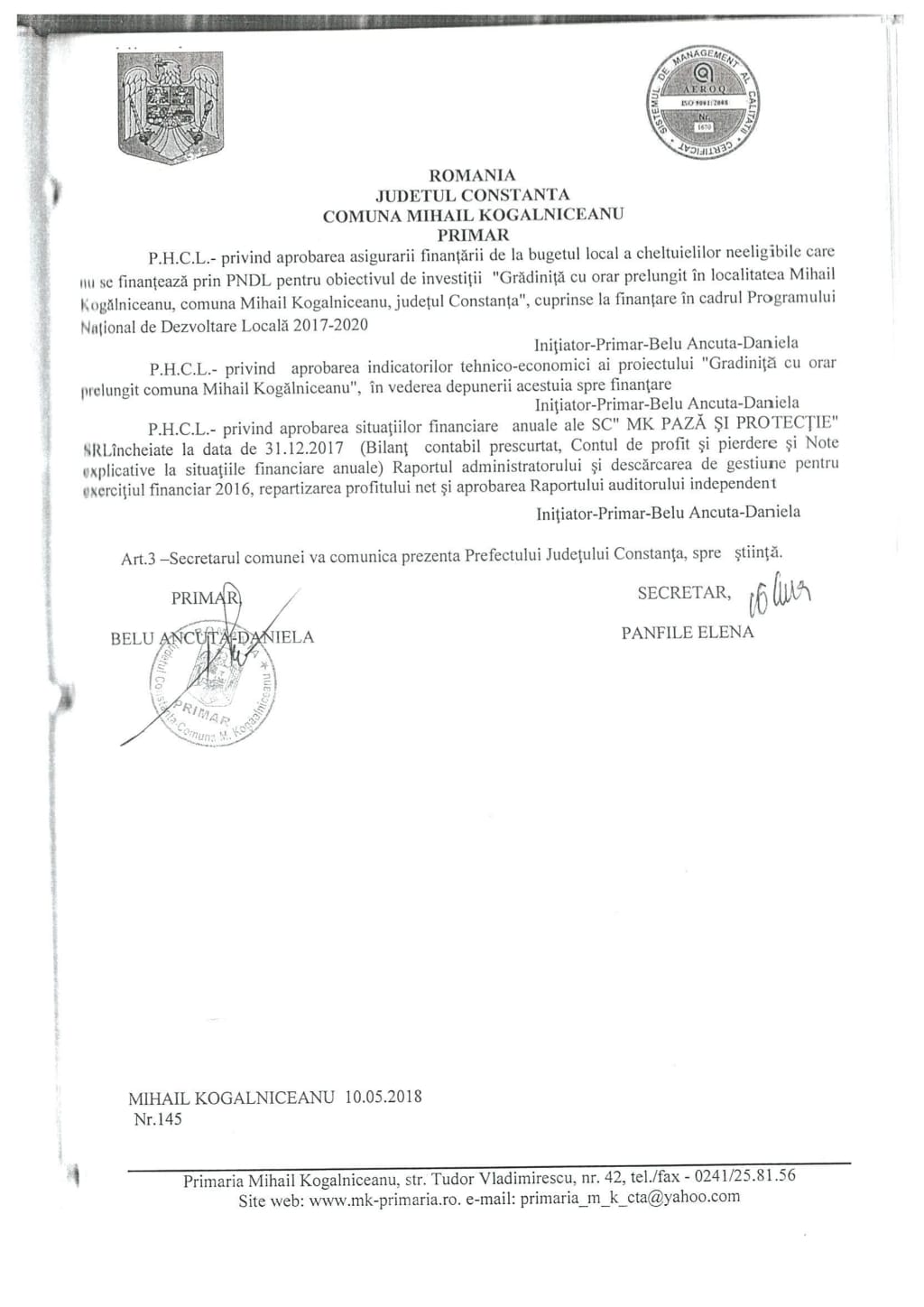 Consiliul Local al Comunei Mihail Kogălniceanu, convocat în ședință de îndată