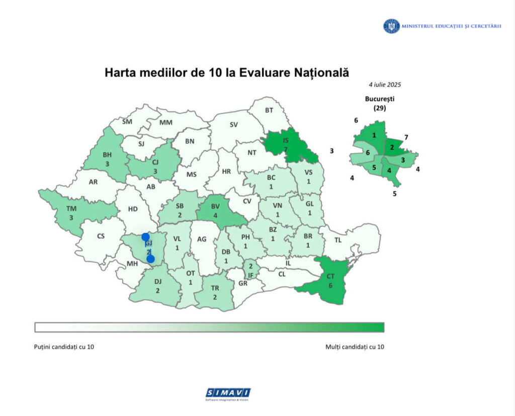 Harta mediilor de 10 la Evaluarea Națională 2025
