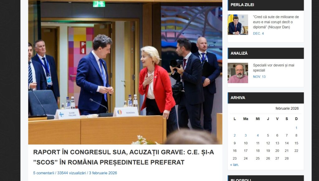 Comisia Judiciară din cadrul Camerei Reprezentanților a Congresului SUA, majoritar republicană, a publicat marți a doua parte a unui raport interimar al personalului comisiei în care Comisia Europeană (CE) este acuzată de derularea unei campanii de “cenzurare a internetului global” în defavoarea candidaților și partidelor “conservatoare și populiste”. Țara noastră este dată exemplu drept locul în care campania Comisiei ar fi fost “cea mai agresivă”.