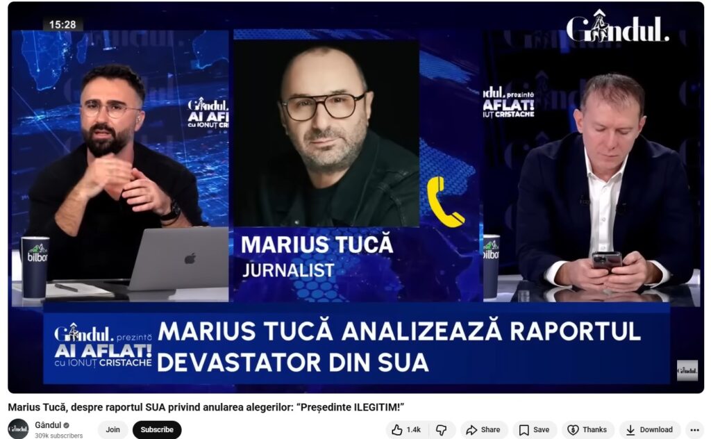 La aceaastă narațiune au contribuit și jurnaliști cunoscuți pentru preluarea narațiunilor pro-Kremlin și conexiunile cu partide extremiste, printre care Ion Cristoiu și Robert Turcescu, ale căror postări despre “lovitura de stat” și “cenzura” confirmate de Congresul SUA au strâns, la rândul lor, zeci de mii de vizualizări pe Youtube.
