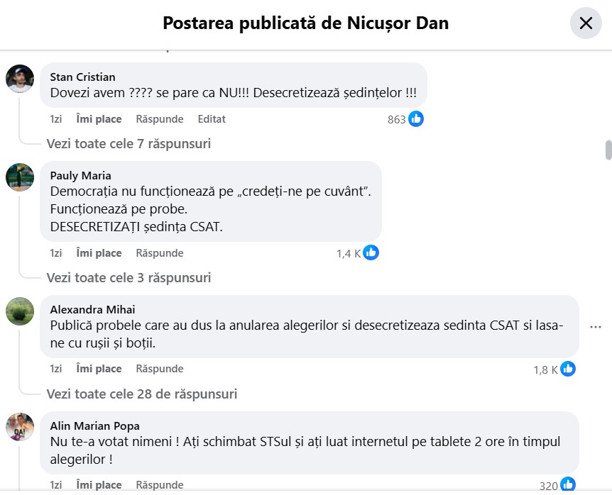 Subiectul s-a viralizat apoi cu ajutorul influencerilor din bula suveranistă, în special conspiraționistul BobbyD, ale cărui postări video în care a acuzat autoritățile române că au “mințit cu nerușinare” despre implicarea Rusiei în alegerile din 2024 și l-a criticat pe Nicușor Dan pentru că “s-a trezit prea târziu” au strâns sute de mii de vizualizări și zeci de mii de reacții în ultimele două zile.