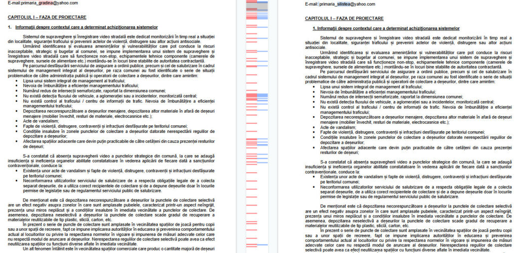 Întrebată de ce există același număr de camere de supraveghere și la o comună cu 15.000 de locuitori, și la una cu 400, unde documentațiile erau copy-paste inclusiv din punct de vedere al redactării, cu nevoi și specificații identice, reprezentanta companiei de consultanță a declarat: “Nici nu pot să vă contrazic, nici nu pot să vă aprob”.