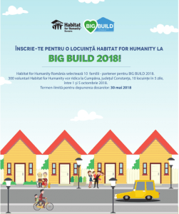 Habitat for Humanity România organizează a zecea ediție a evenimentului de construire accelerată și voluntariat BIG BUILD 2018 la Cumpăna, în județul Constanța. Între 1 și 5 octombrie 2018, organizația va construi 10 locuințe în 5 zile. Până pe 30 mai 2018, familiile cu venituri reduse din Cumpăna care locuiesc în condiții precare pot aplica pentru una dintre cele 10 case construite de Habitat for Humanity.