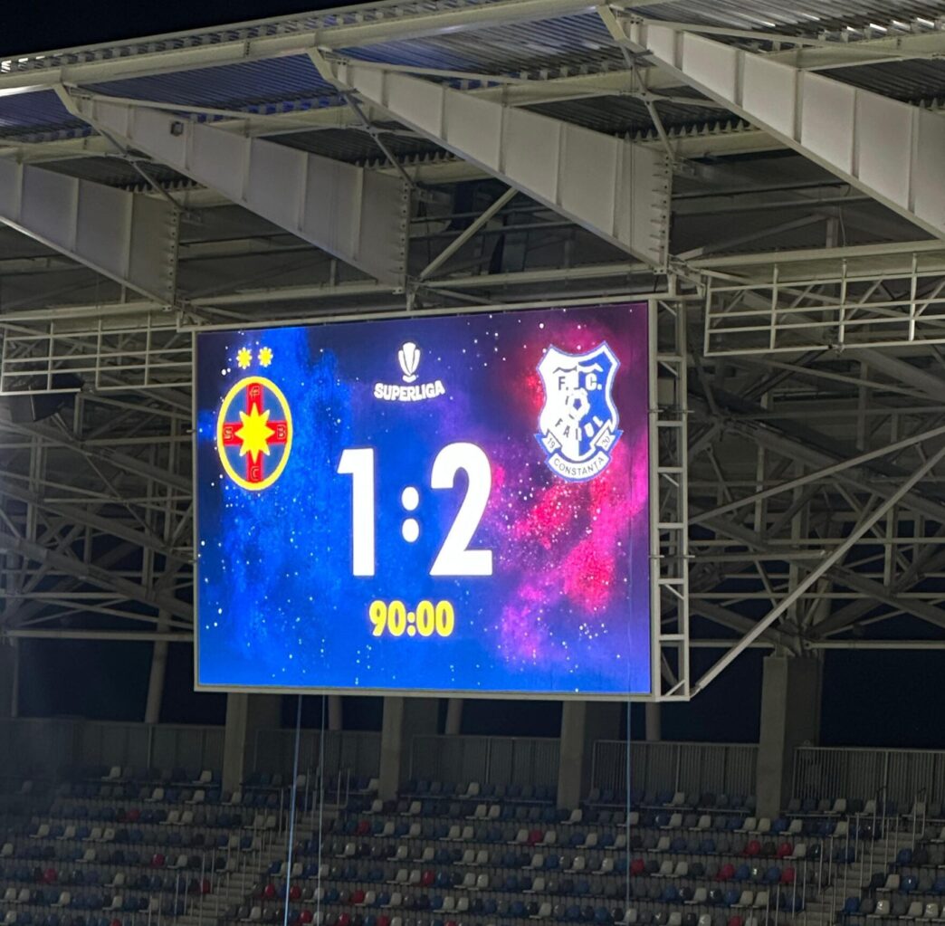 Farul Constanța a câștigat în fața campioanei României, cu scorul de 2-1, în Ghencea, la capătul unui meci care a fost prelungit cu 16 minute. Portarul gazdelor, Ștefan Târnovanu, a fost eliminat în repriza secundă, după protestele la adresa arbitrului George Găman. Iar echipa antrenată de Ianis Zicu a avut un penalty și un gol anulat, după analiza VAR.