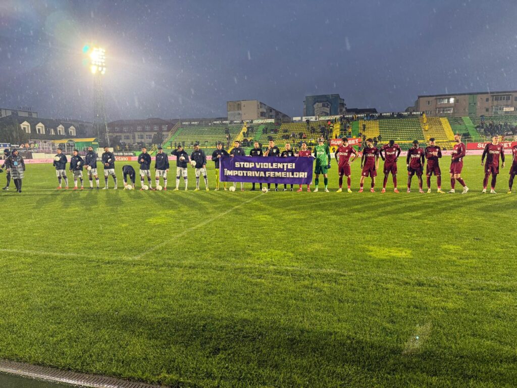 Toate echipele de fotbal din prima ligă au afișat pe teren, etapa trecută, mesaje care condamnă violența de gen, a transmis Centrul FILIA.
