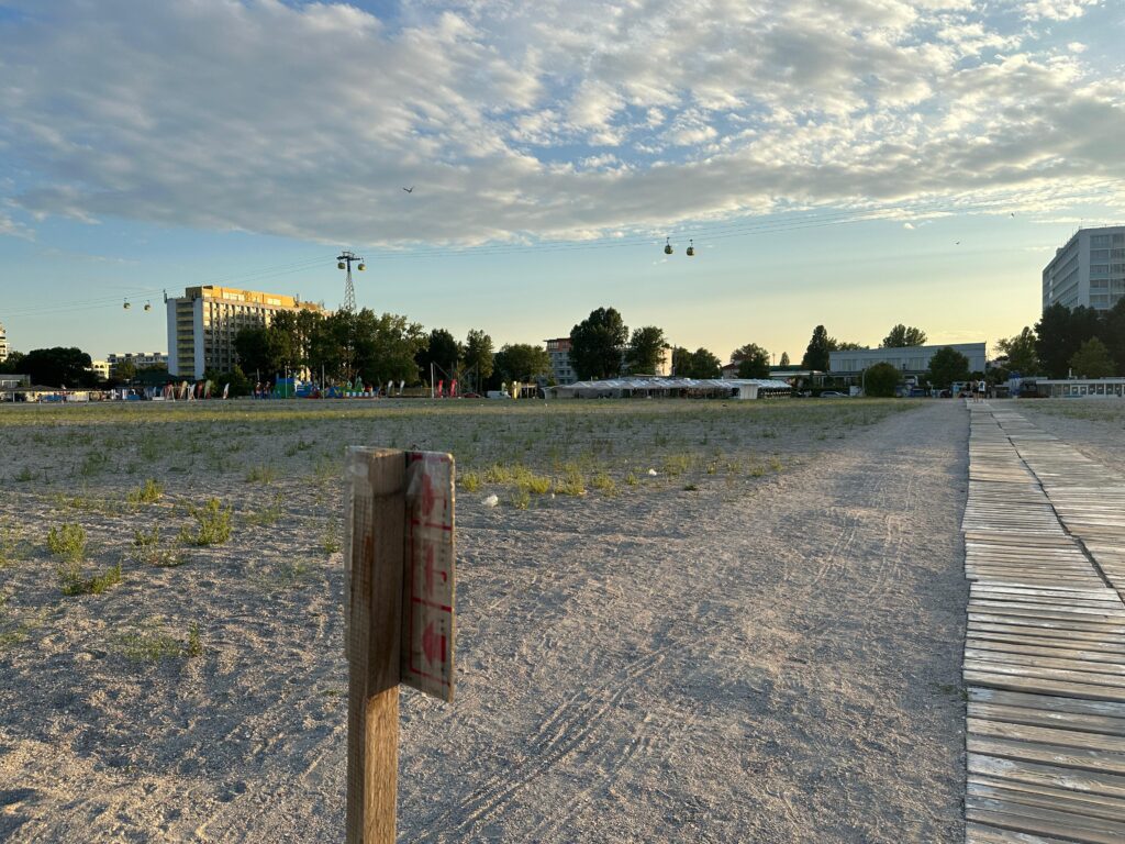 În drumul spre centrul stațiunii, reporterii ISE au intrat și pe plajele lărgite, acolo unde au observat vegetația crescută. În drumul de câteva minute bune străbătut până la mal erau zone de plajă cu iarbă și copaci crescuți.