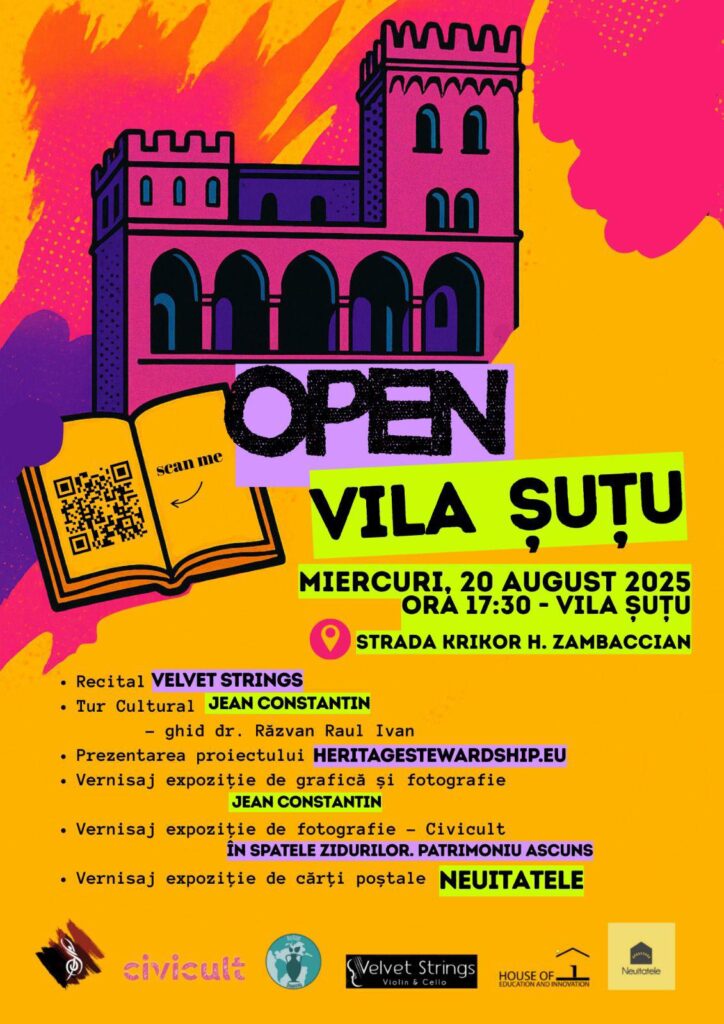 Vila Suțu a găzduit, miercuri, expoziția ”În spatele zidurilor. Patrimoniu uitat”, organizată de Centrul Cultural Județean „Teodor T. Burada. Evenimentul, numit și ”Open Vila Suțu”, pune la dispoziție vizitatorilor trei vernisaje, un recital, tur ghifdat și prezentarea proiectului heritagewardship.eu.