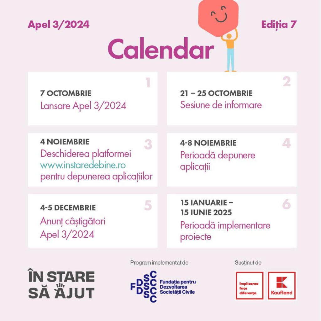 #ÎnStareSăAjut, cel de-al treilea apel de proiecte din 2024, lansat în această lună, este destinat finanțării proiectelor depuse de ONG-uri pe teme de sănătate emoțională a adolescenților. Propunerile de proiecte trebuie să ofere acces la resurse și activități ce promovează conștientizarea și gestionarea eficientă a emoțiilor, precum și construirea de relații sănătoase, contribuind astfel la prevenirea problemelor de sănătate mintală în rândul publicului-țintă.