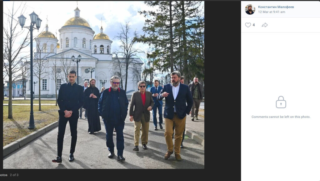 „O delegație de bloggeri conservatori de limbă engleză, printre care Andrew Napolitano, expertul militar Larry Johnson și gazda emisiunii „69 Minutes” de pe X Network, Mario Nawfal, a vizitat gimnaziul nostru Sfântul Vasile cel Mare. După vizită, profesorul Alexander Dugin și cu mine am vorbit cu ei sub forma unui interviu”, a scris Malofeev pe rețeaua rusă de socializare.