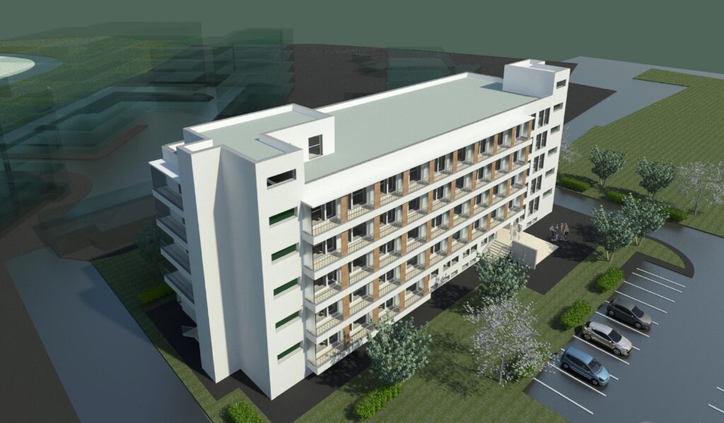 Conform proiectului, la demisolul clădirii va funcţiona o spălătorie cu uscătorie şi călcătorie de rufe, cabinet medical, arhivă, cameră de curățenie, spații de depozitare, bibliotecă multimedia şi o sală socializare. De asemenea, toate nivelurile cu spaţii de locuit sunt proiectate cu acces la ascensoare pentru studenți și pentru persoanele cu dizabilități, zonă pentru recreere şi informare, sală de lectură, sală de mese cu chicinetă, iar la parter va funcţiona recepția cu portar, biroul administrativ, un foaier, cabinet medical şi o sală de ședințe.
