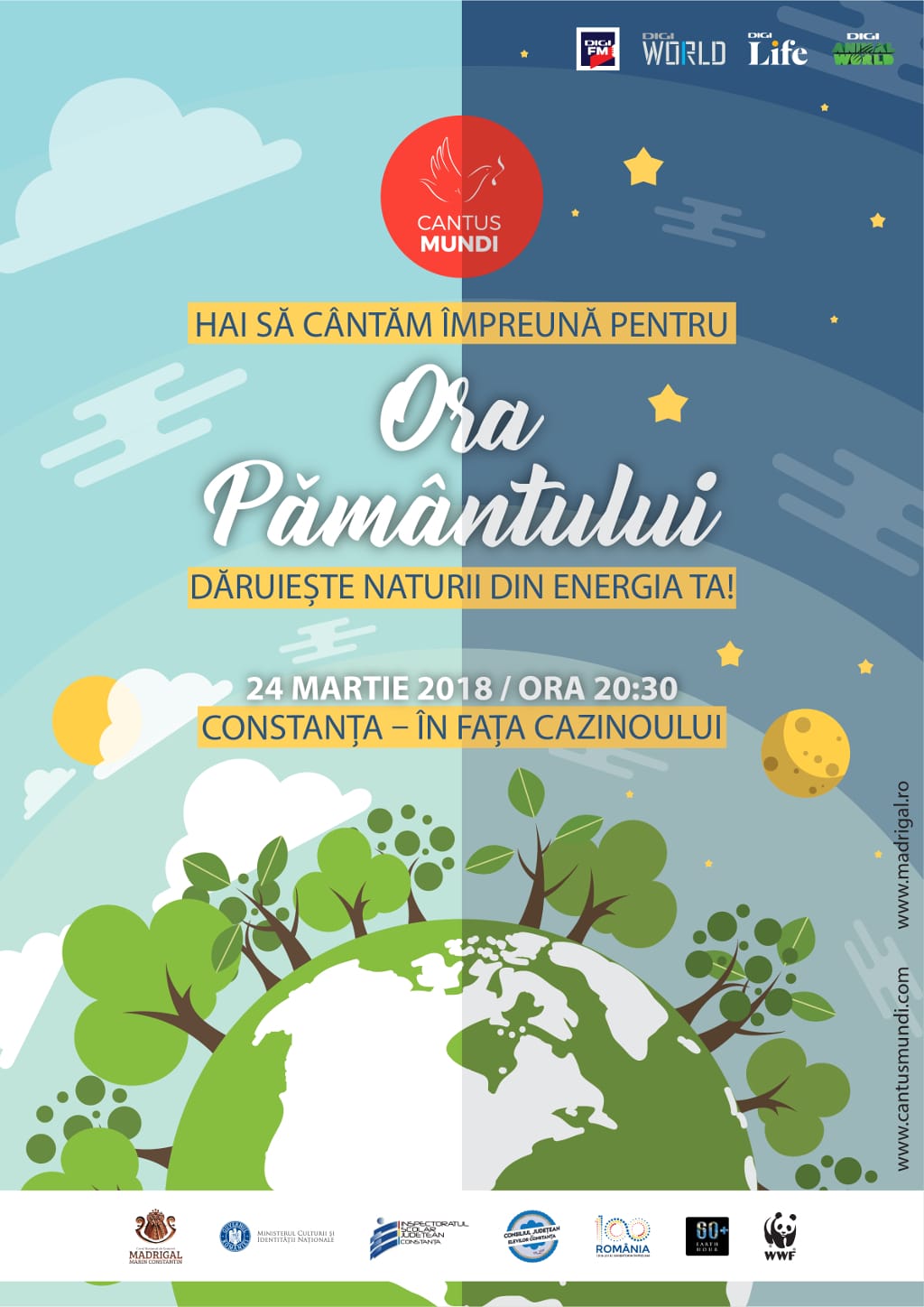 Cea de a treia ediție a evenimentului „Ora Pământului” organizat de echipa Cantus Mundi este realizat în parteneriat cu WWF (World Wide Fund for Nature), care a lansat acest proiect în 2007. „Muzica înseamnă generozitate, iar un om generos este în primul rând responsabil cu mediul înconjurător. Din perspectiva Cantus Mundi, cel mai mare program de integrare socială prin muzică, afilierea la un proiect de responsabilitate socială este o normalitate. Am implicat corurile Cantus Mundi în această frumoasă poveste numită Earth Hour încă din 2016, iar acum am ajuns să organizăm în peste 54 de localități evenimente care promovează deopotrivă mișcarea vocală și grija față de planeta noastră. Muzica a peste 10.000 de copii și tineri din programul Cantus Mundi se va auzi în 24 martie în toată România și sperăm că ne va reaminti tuturor că trebuie să fim responsabili, informați și educați în privința protejării resurselor pământului”, a declarat Emil Pantelimon, Managerul Corului Național de Cameră „Madrigal-Marin Constantin”.