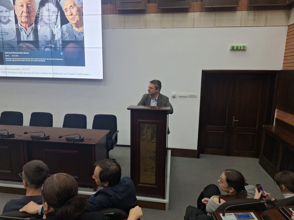După o scurtă introducere a lui Daniel Citirigă, decanul Facultății de Istorie și Științe Politice din cadrul UOC, a urmat o dezbatere de aproape două ore în care istoricul german de origine română, care predă la Universitatea „Johannes Gutenberg” din Mainz, Germania, a abordat, în fața a peste 100 de studenți și profesori, subiecte precum “moștenirea malefică” a naziștilor, dar și modul în care societatea germană gestionează trauma și responsabilitatea pentru genocidul comis împotriva evreilor și a altor grupuri minoritare din Europa în timpul celui de Al Doilea Război Mondial.