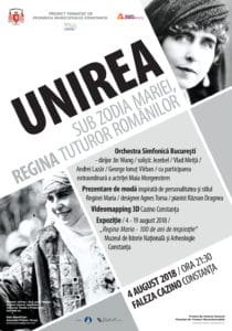 Cazinoul, aşa cum nu l-aţi mai văzut niciodată, moda şi muzica de acum un secol, vocile extraordinare ale prezentului care reînvie emoţii din trecut, nume imense ale scenelor internaţionale, mărturii ale acelor vremuri – toate aceste elemente sunt reunite sub egida “Unirea – Sub zodia Mariei, Regina tuturor românilor”, un eveniment în premieră naţională la Constanţa, în care Regina Maria este celebrată în toate ipostazele sale, în cadrul sărbătoririi Centenarul Marii Uniri de la 1918 în oraşul nostru.