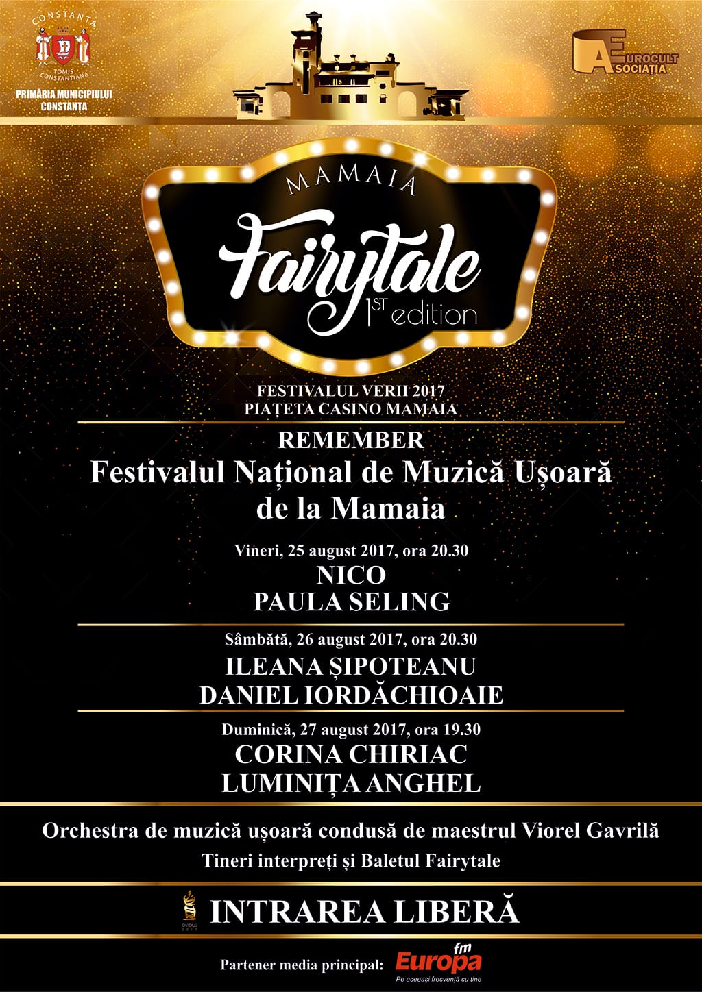 Orchestra de muzică uşoară care va fi alături de toate aceste mari voci ale scenelor româneşti este condusă de maestrul Viorel Gavrilă, iar Baletul Fairytale va fi, ca în fiecare seară, prezent pe scena din Piaţeta Casino. Intrarea este liberă.