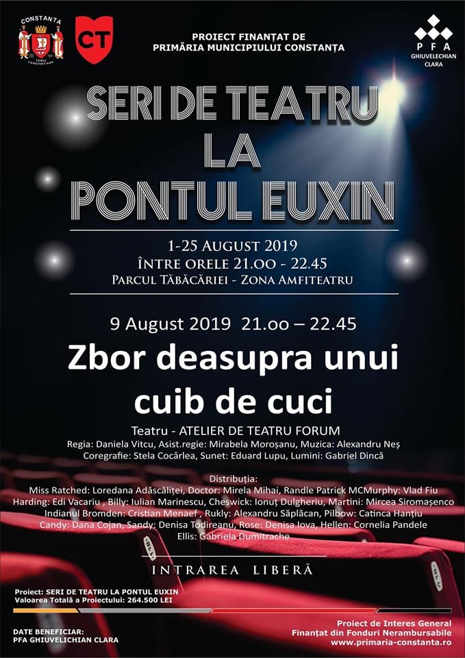 Vineri, 9 august, de la ora 21.00, publicul constănțean, dar și turiștii, sunt invitați să vadă un alt spectacol emoționant și premiat, producție a Facultății de Arte a Universității „Ovidius”, așa cum este și „Cocoșatul de la Notre-Dame“: „Zbor deasupra unui cuib de cuci”, de Ken Kesey.