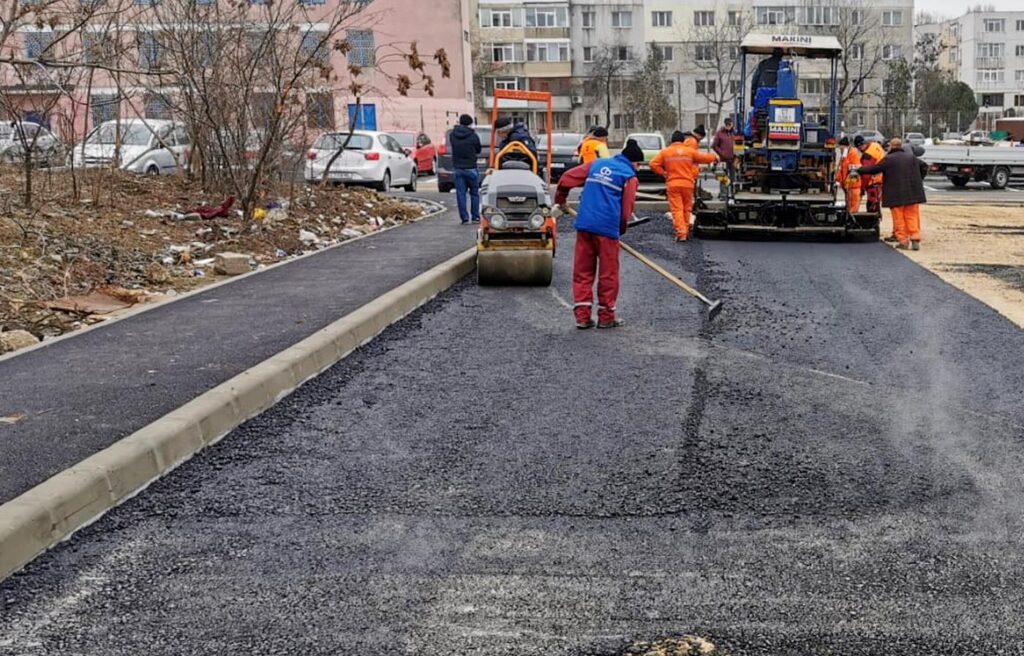 Procesul de asfaltare a zonei carosabile avansează pentru a acoperi și celalaltă jumătate a parcării. Ieri s-a intervenit asupra carosabilului cu utilaje pentru turnarea primului strat de asfalt compus din binder. Astăzi, se va așterne stratul de uzură, care conferă rezistență și durabilitate mixturii asfaltice.