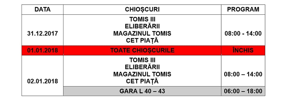 Programul de funcționare al chioșcurilor RATC în perioada revelionului