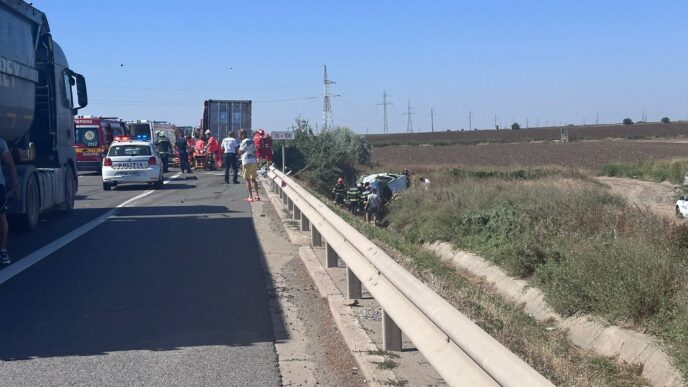 Plan roșu în Constanța, după un accident între un microbuz și un TIR: 11 victime, din care o persoană intubată și preluată de elicopterul SMURD