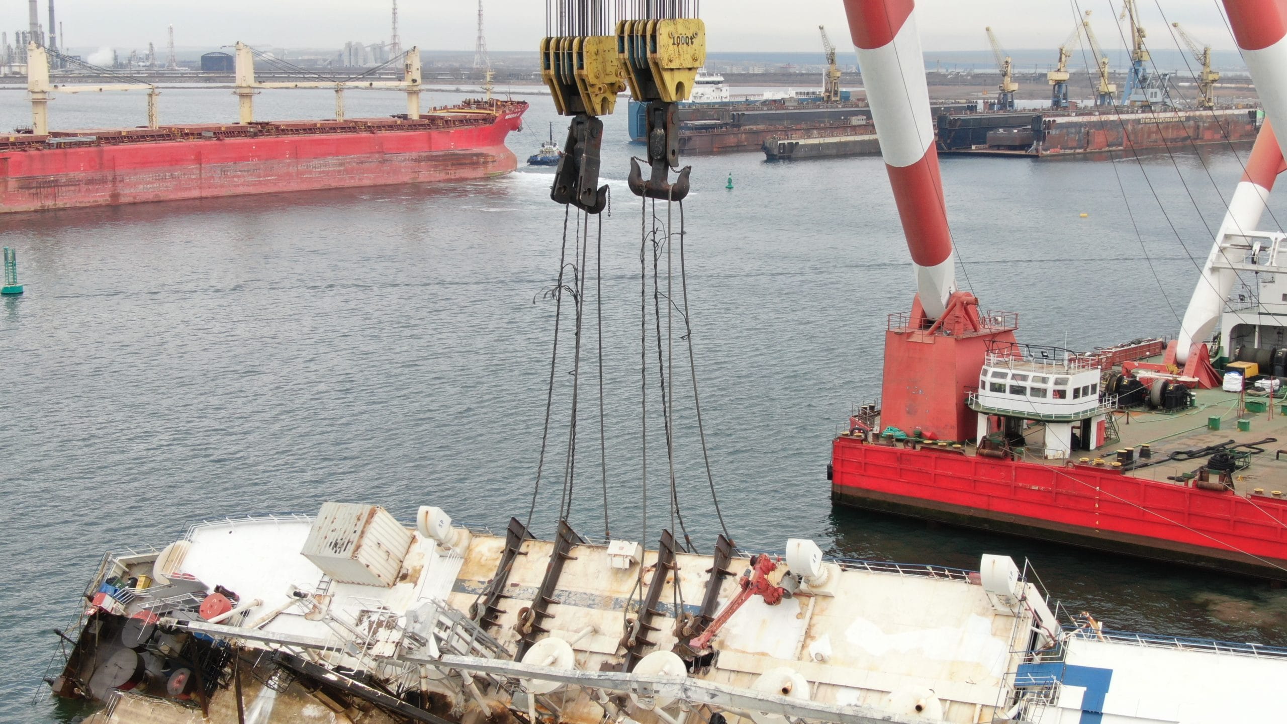 VIDEO Momentul în care cablurile s-au rupt. Filmul încercării eșuate de ridicare a navei cu oi din Portul Midia