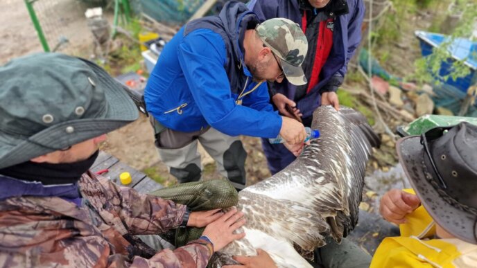 Șapte pelicani creți din Delta Dunării, echipați cu transmițătoare GPS-GSM