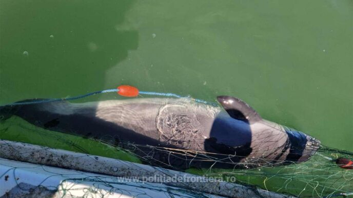 VIDEO Un delfin și mai mulți sturioni, eliberaţi de poliţiştii de frontieră, în Tulcea/ Au fost găsite plase de pescuit de peste un kilometru