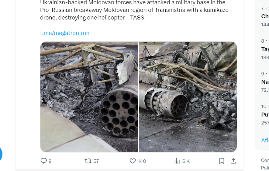 BREAKING Tensiuni în Transnistria / Autoritățile de la Tiraspol susțin că o dronă lansată din Ucraina a explodat peste o bază militară/ Agenția rusă Tass suține că atacul kamikaze a fost lansat de ”foțele moldovenești susținute de Ucraina”