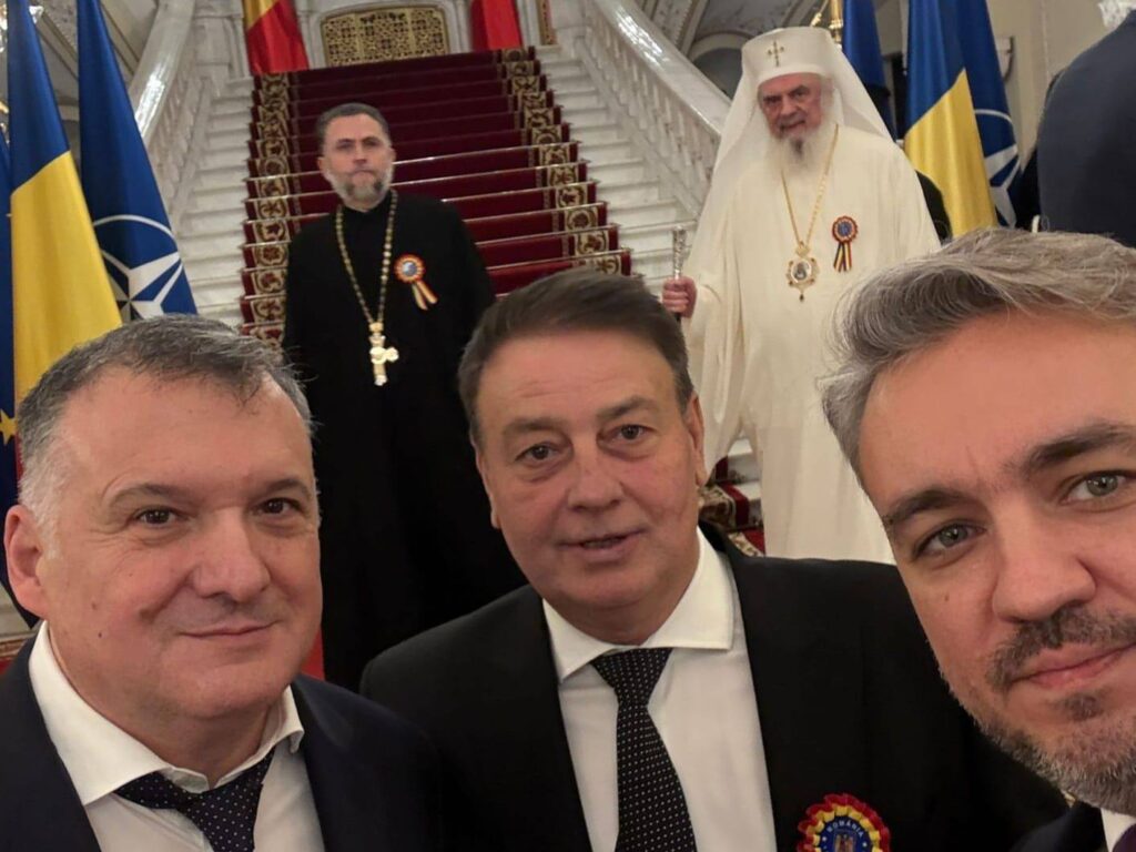 - Notă: Bogdan Huțucă a publicat o fotografie, alături de Florin Mitroi și George Niculescu, șeful ANRE la recepția organizată la Palatul Cotroceni, de către președintele Nicușor Dan, cu ocazia Zilei Naționale a României.