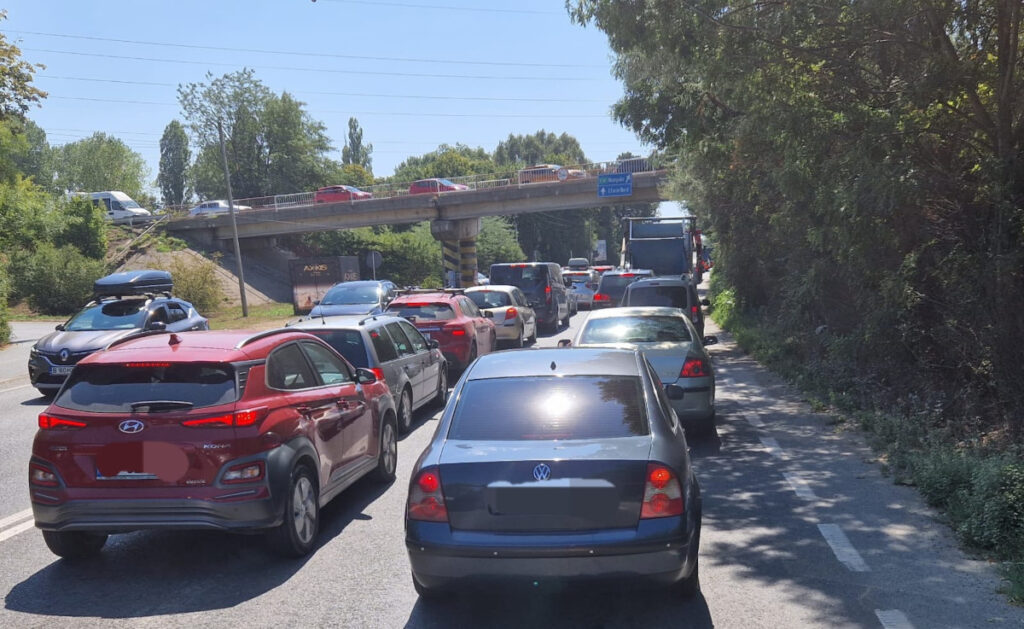 Pe sensul spre Vama Veche, oamenii așteaptă în trafic între Agigea și Eforie. 1,5 kilometri sunt parcurși în jumătate de oră, conform reporterilor Info Sud-Est care se află în zonă.