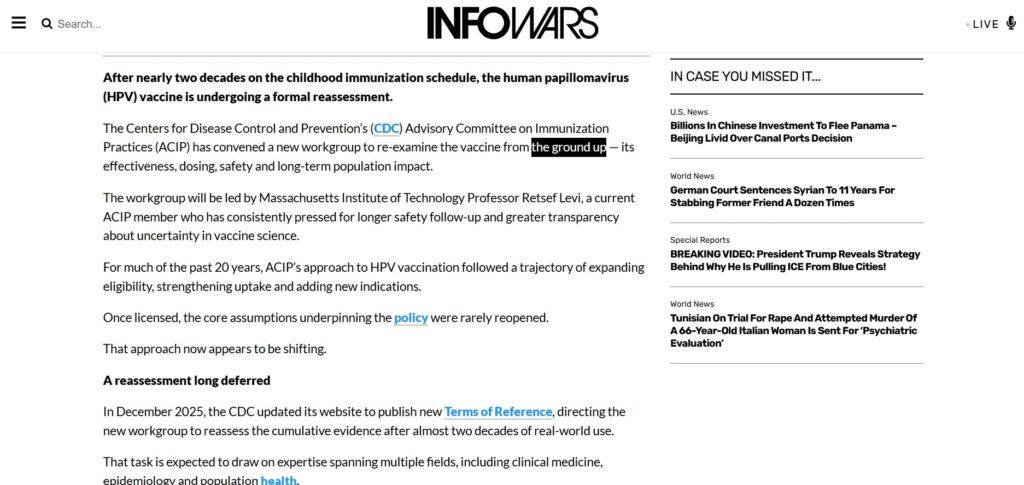 Singura concluzie certă și nesenzaționalistă trasă de InfoWars, în final, este că unele recomandări anterioare ale ACIP despre vaccinul HPV ar putea fi “reformulate sau retrase” dacă grupul de lucru va obține noi dovezi despre efectele sale, conform noilor Termeni de Referință ai CDC, actualizați în decembrie 2025.
