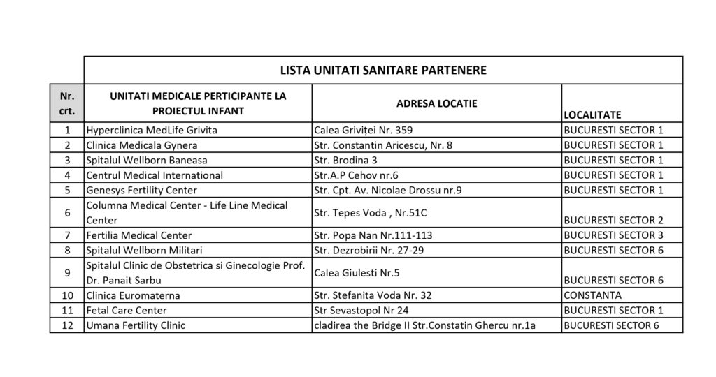 - Obiectivul programului „INFANT” este creșterea natalității în rândul populației de pe raza municipiului Constanța, prin acordarea de sprijin financiar pentru efectuarea procedurii de fertilizare în vitro, arată primăria.